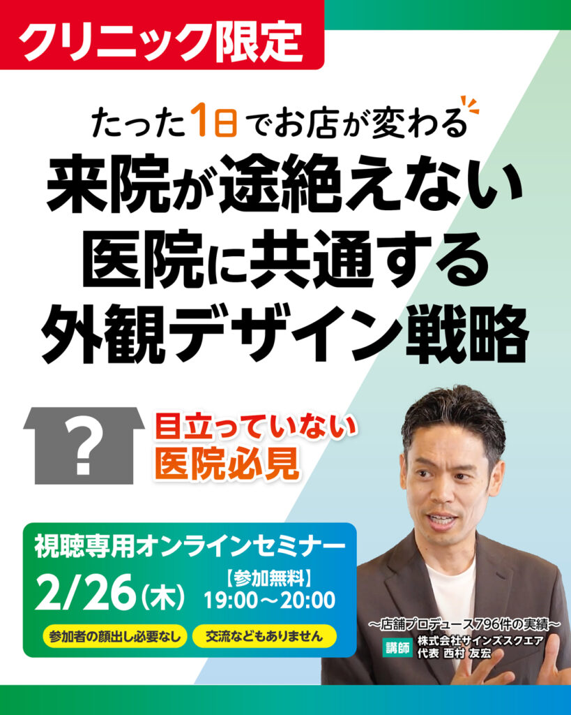 - 看 板クリニック集客できるクリニックにするには?|外観に〇〇〇〇が必要!