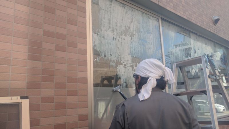 次に、ガラス面のリニューアルはどのように工事されているのか、施工現場をリポートさせて頂きます。