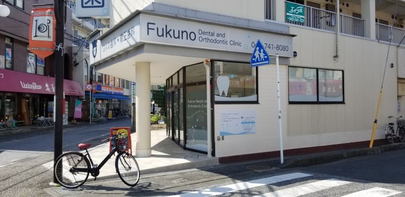 ふくの歯科周辺こちらは、通りの角地にある人通りの多い好立地の歯科医院です。