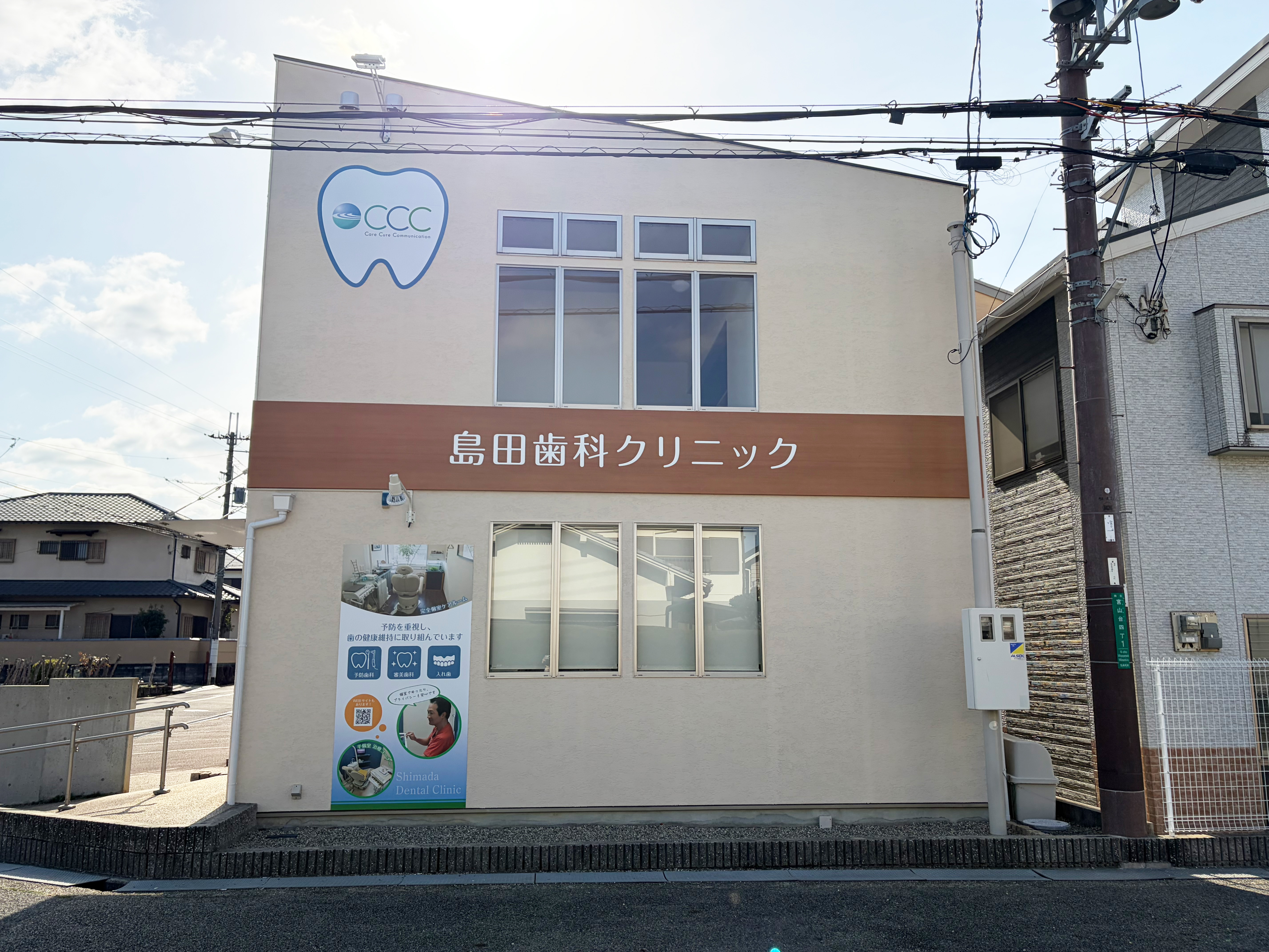 泉北高速鉄道泉ヶ丘より車で6分・大阪府堺市にある島田歯科クリニックさまの施工事例です。島田歯科クリニックさまのリニューアルに伴う外観制作を担当させていただきました。遠くからでも目に入り、印象に残る歯医者さんにリニューアルいたしました。
