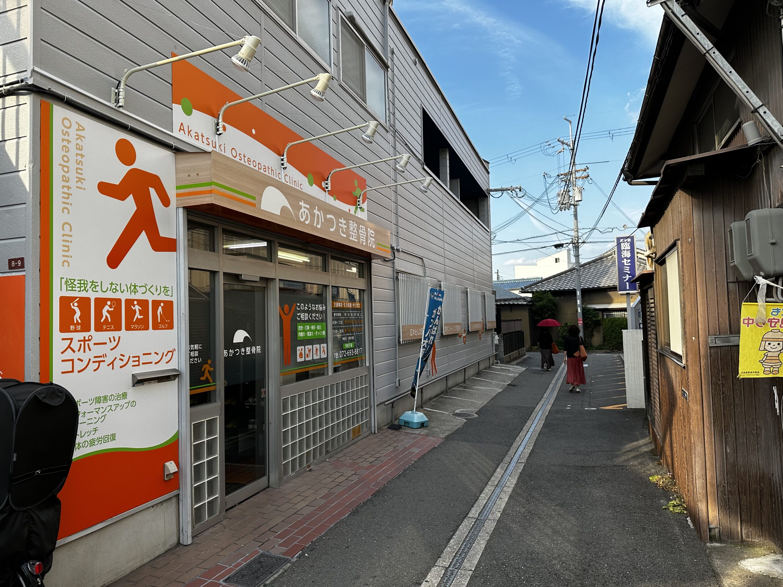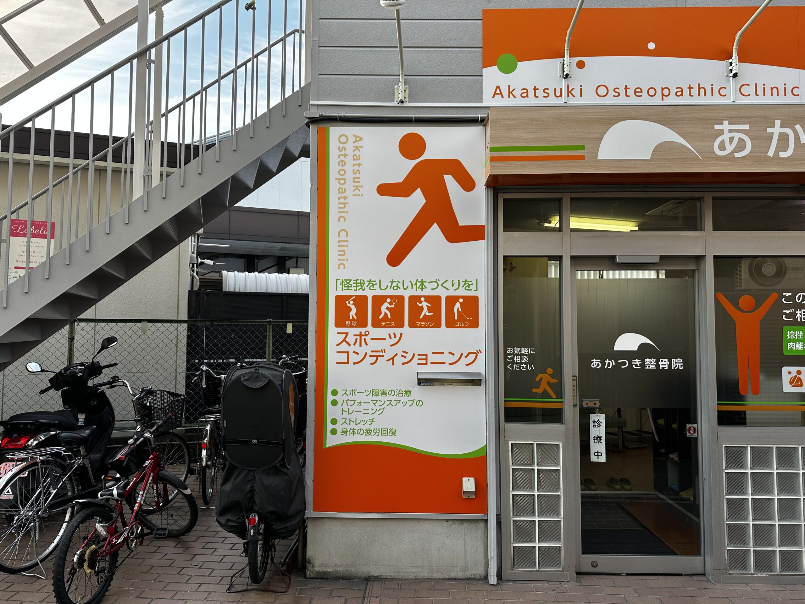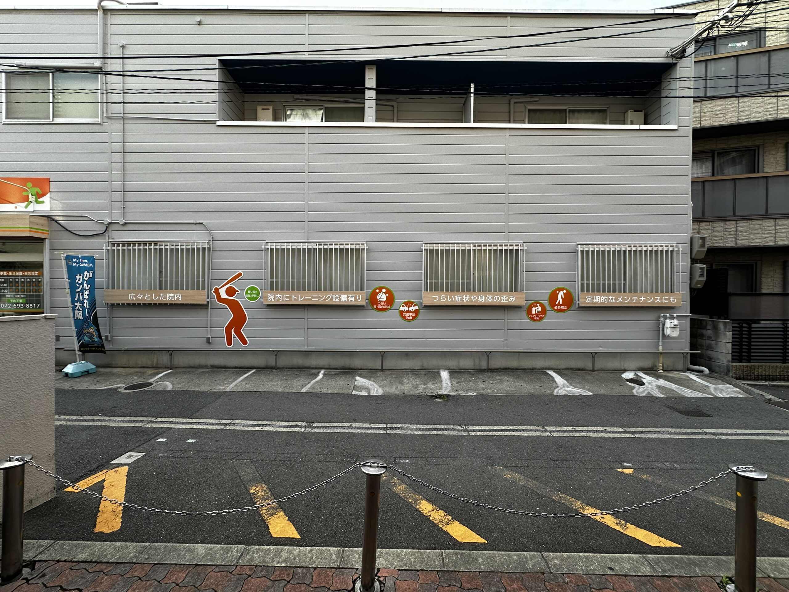角の壁面を活かして、立体文字と診療案内板を設置することでシンプルに分かりやす…