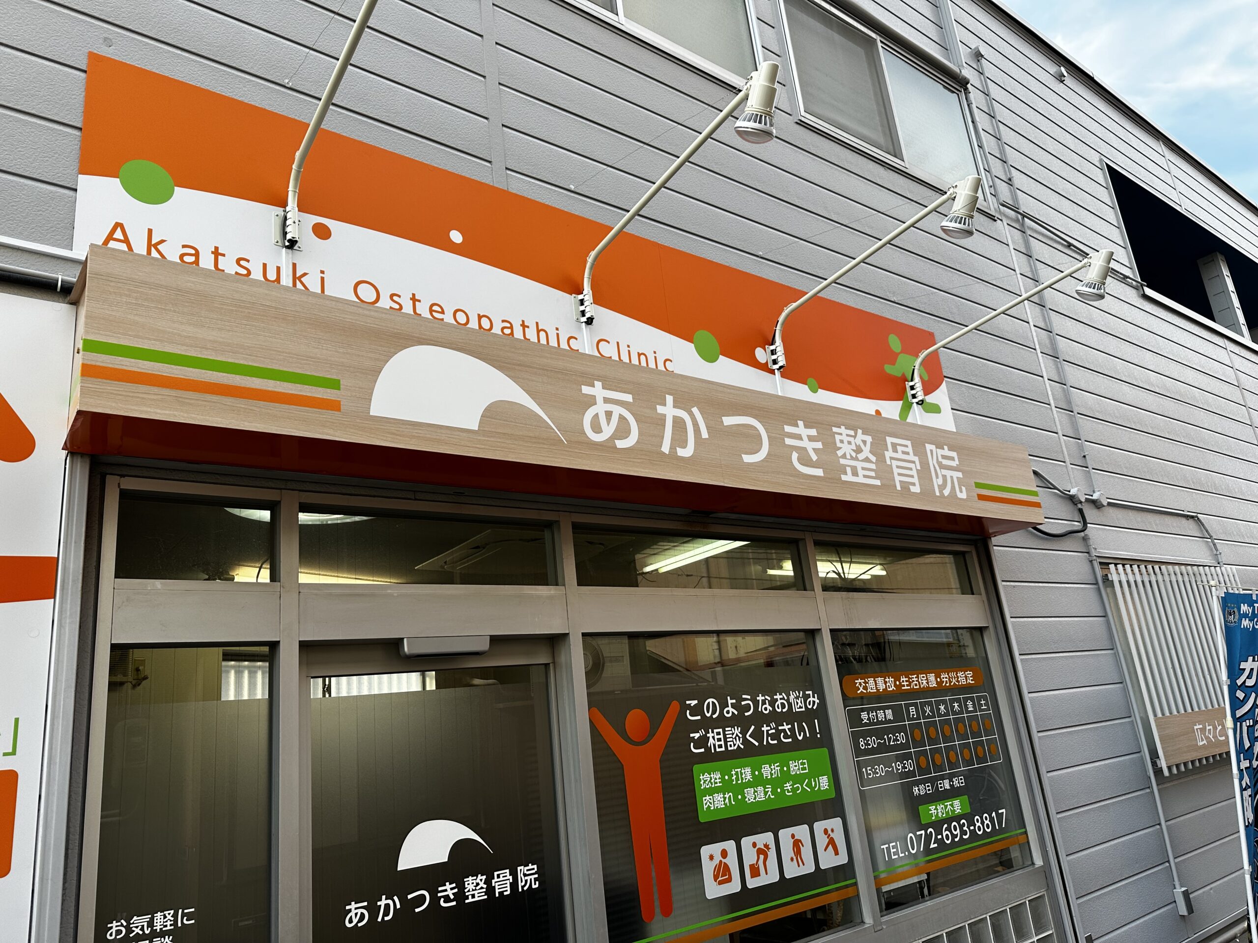 立体文字に投光器を取り付け、明るく分かりやすいデザインに仕上げました。B…
