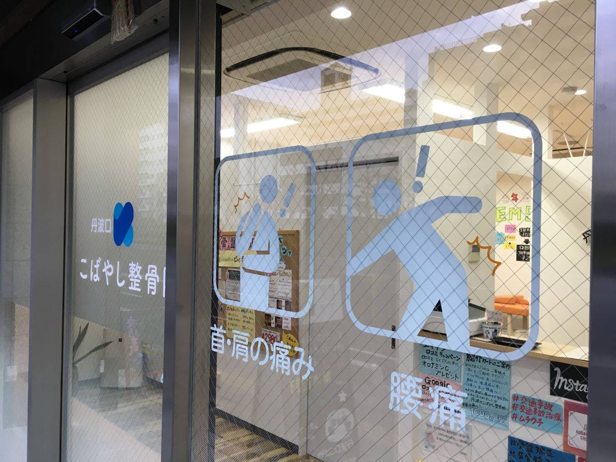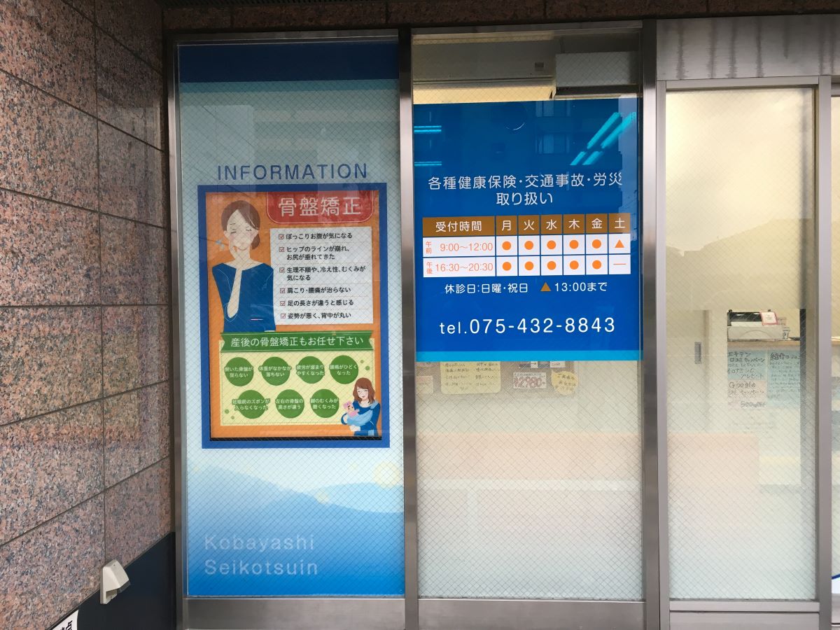 ガラスにシートで装飾して親しみやすく、情報発信するための看板も設置してわかり…