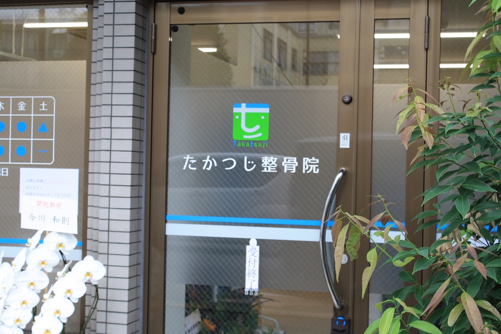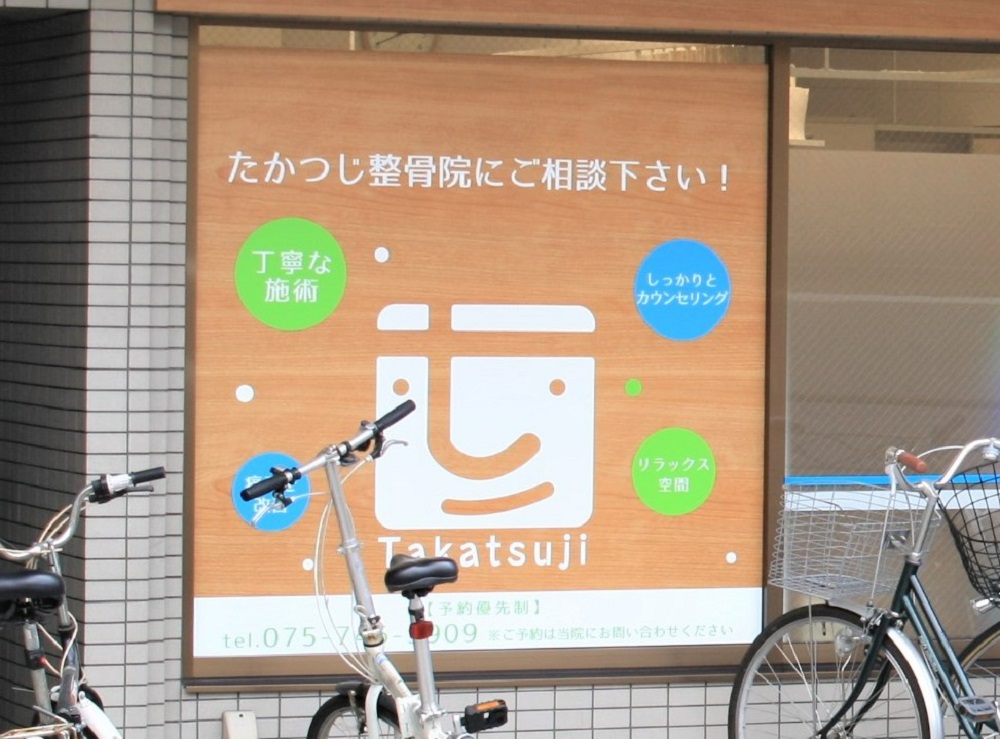 間口の広いガラス面にカッティングシートを利用して、親しみやすいデザインに仕上…