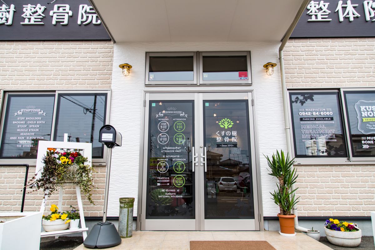 間口の広いガラス面にカッティングシートを利用して、親しみやすいデザインに仕上…