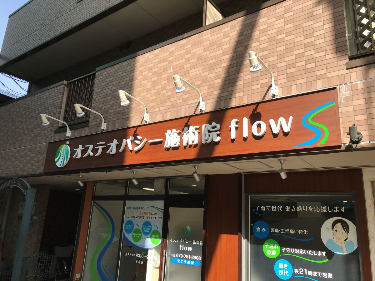 立体文字に投光器を取り付け、明るく分かりやすいデザインに仕上げました。B…