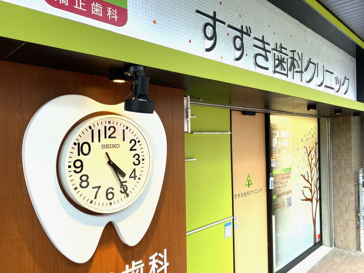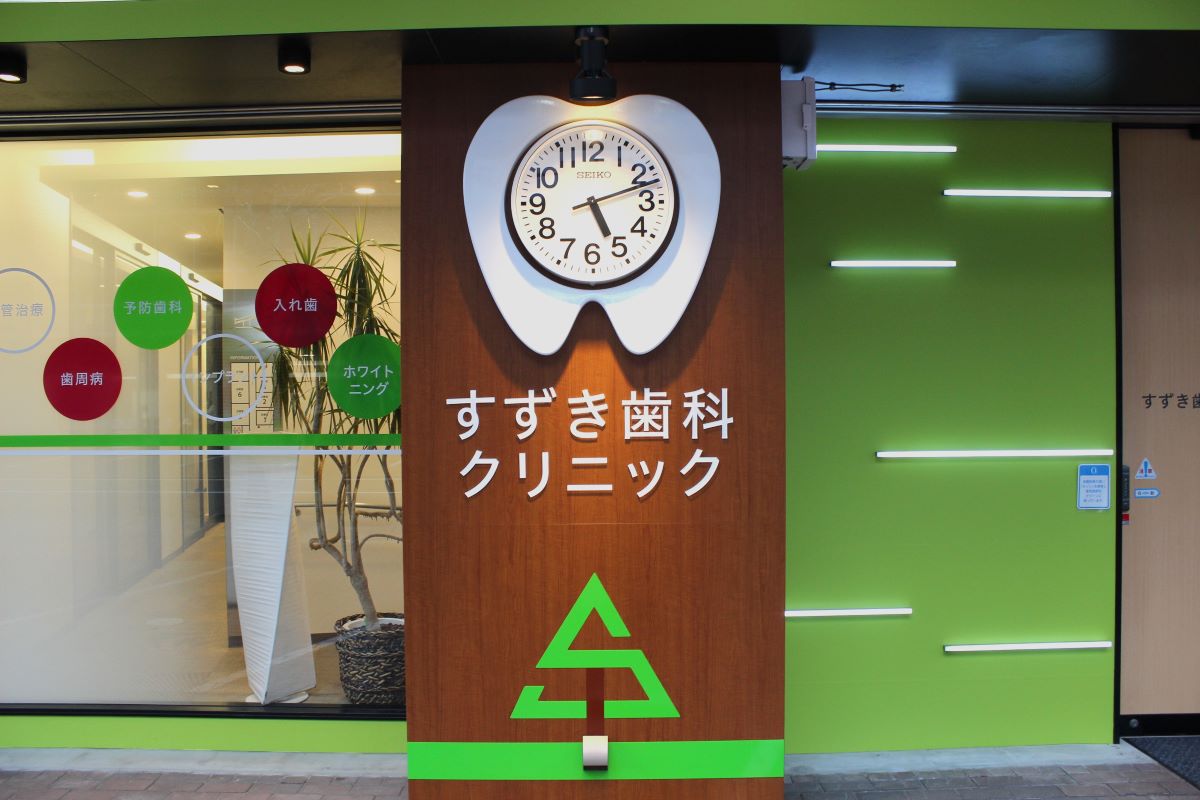 歯型の時計を設置し、インパクトがありつつ優しいデザインに仕上げました。