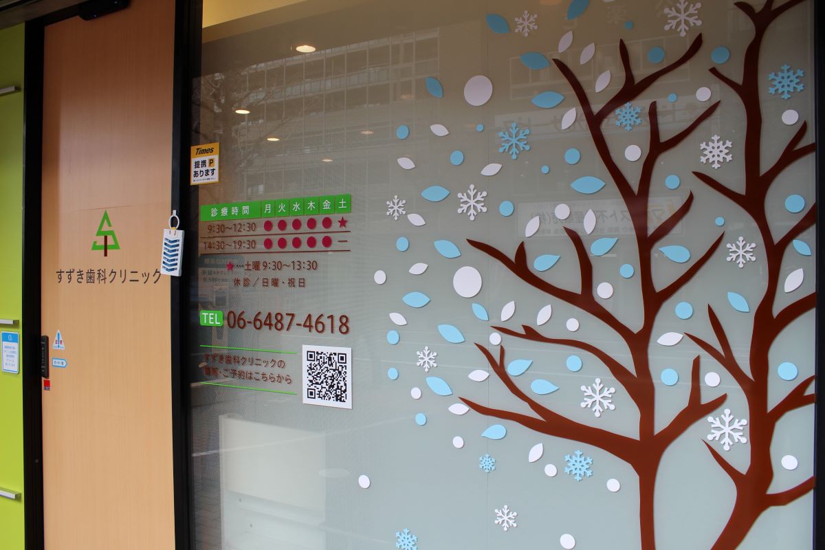 木目調の看板と、ガラス面には植物のイラストをあしらい、ナチュラルで優しいデザ…