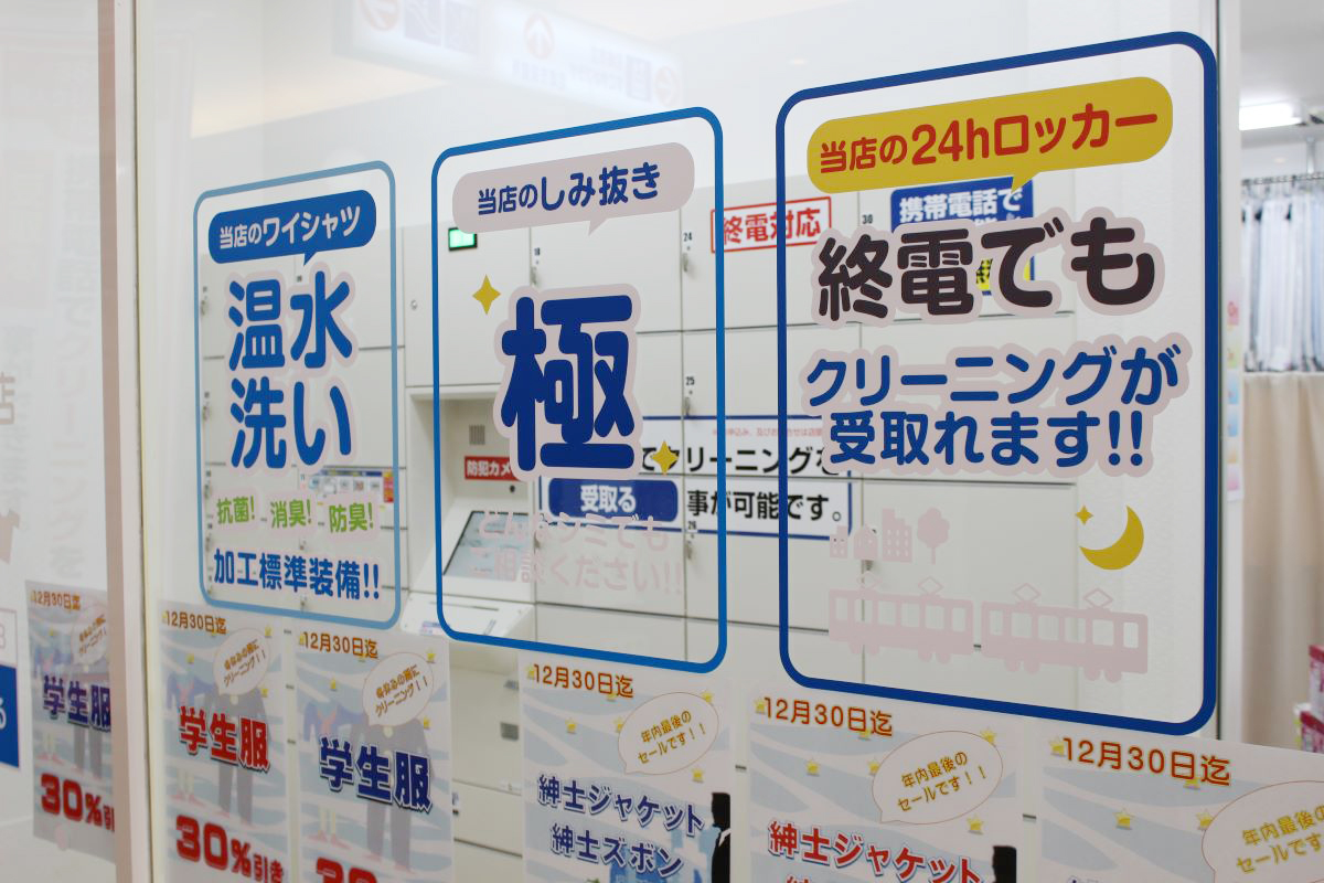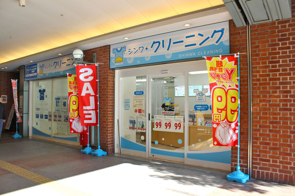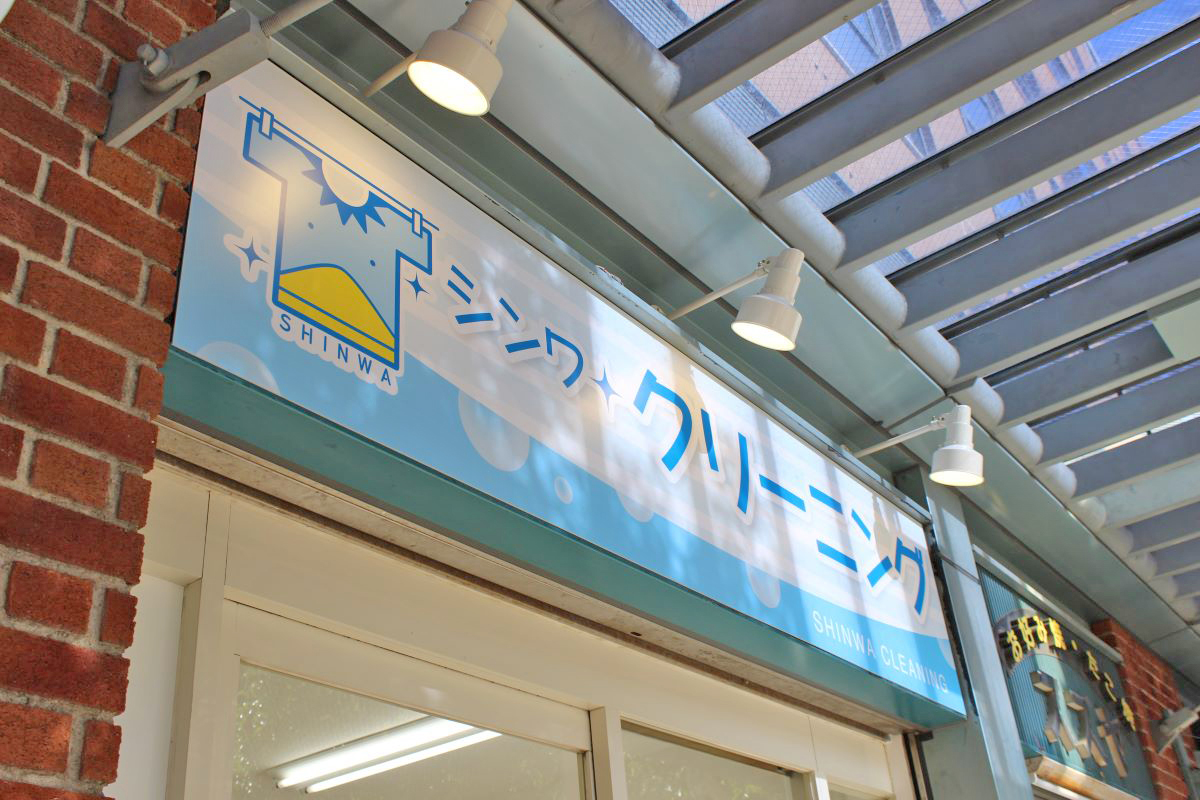 ブルーの配色でクリーニング店らしい爽やかで清潔感あるデザインに仕上げました。