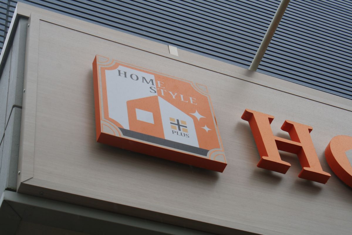 ナチュラルな木目調ダイノックシートと立体文字を使用し、オレンジとブラウンの配色で明るく品のある外観に仕上げました。