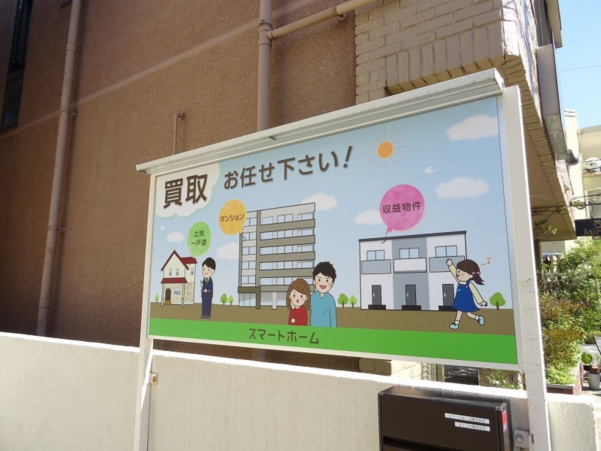 自立サインでイラストと事業内容を提示して分かりやすくしました。