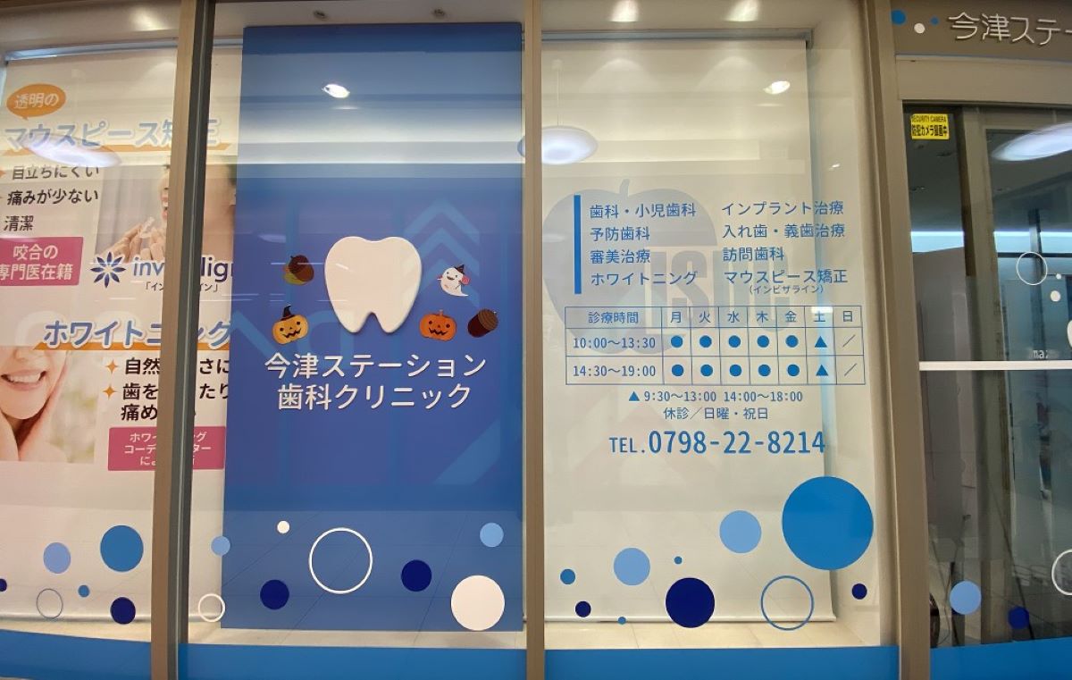 大きな壁面を活かして歯型の時計を設置し、思わず目を引く明るい外観にリニューア…