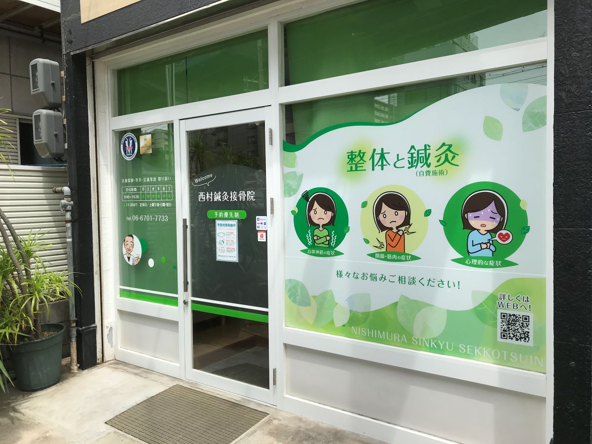 大きいガラスを全面的に活用し、イラストや写真を入れてサロンイメージが伝わるよ…