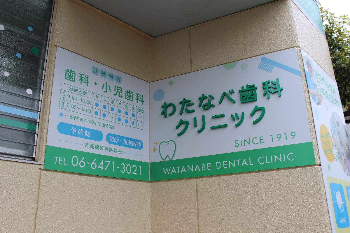 シンボリックな歯ブラシのサインを設置して存在感のある外観になりました。B…