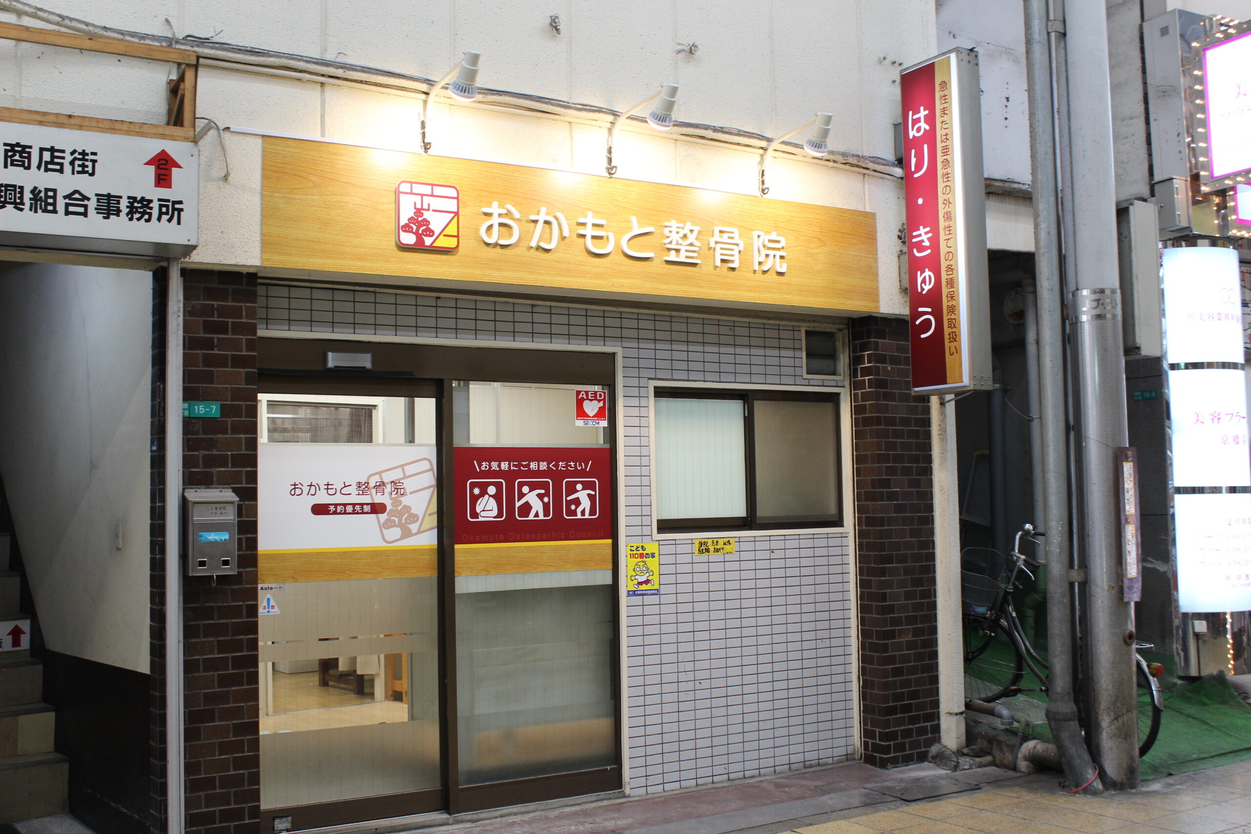 整骨院のキーカラーで建物全体をスペーシングして、明るく分かりやすい外観に仕上…