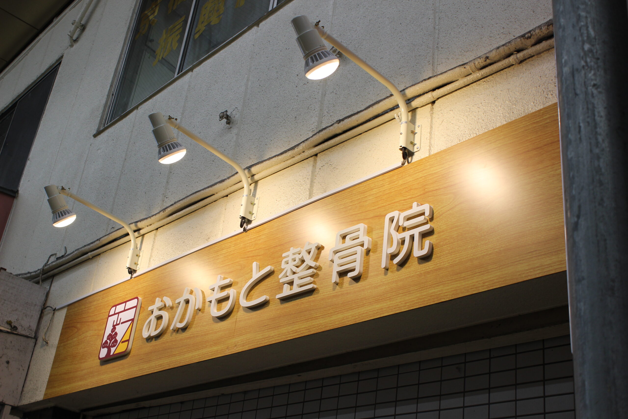 立体文字に投光器を取り付け、明るく分かりやすいデザインに仕上げました。B…