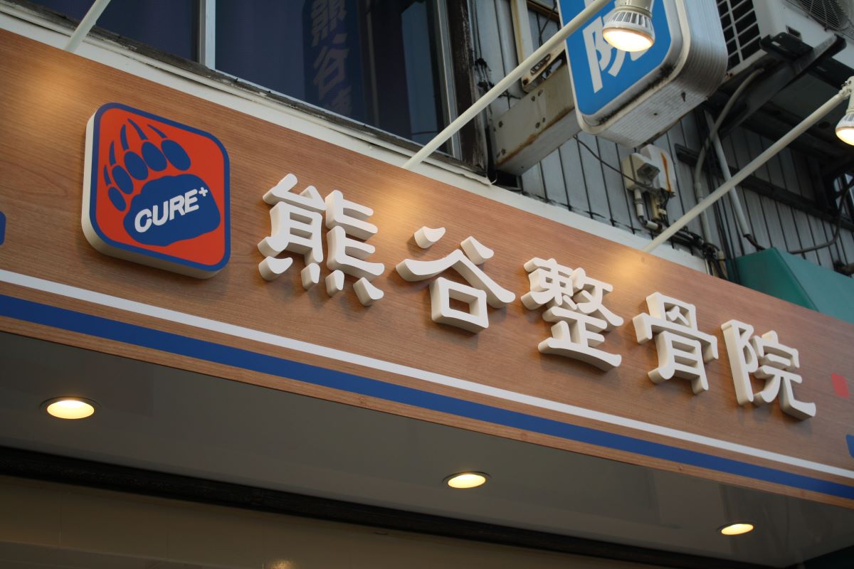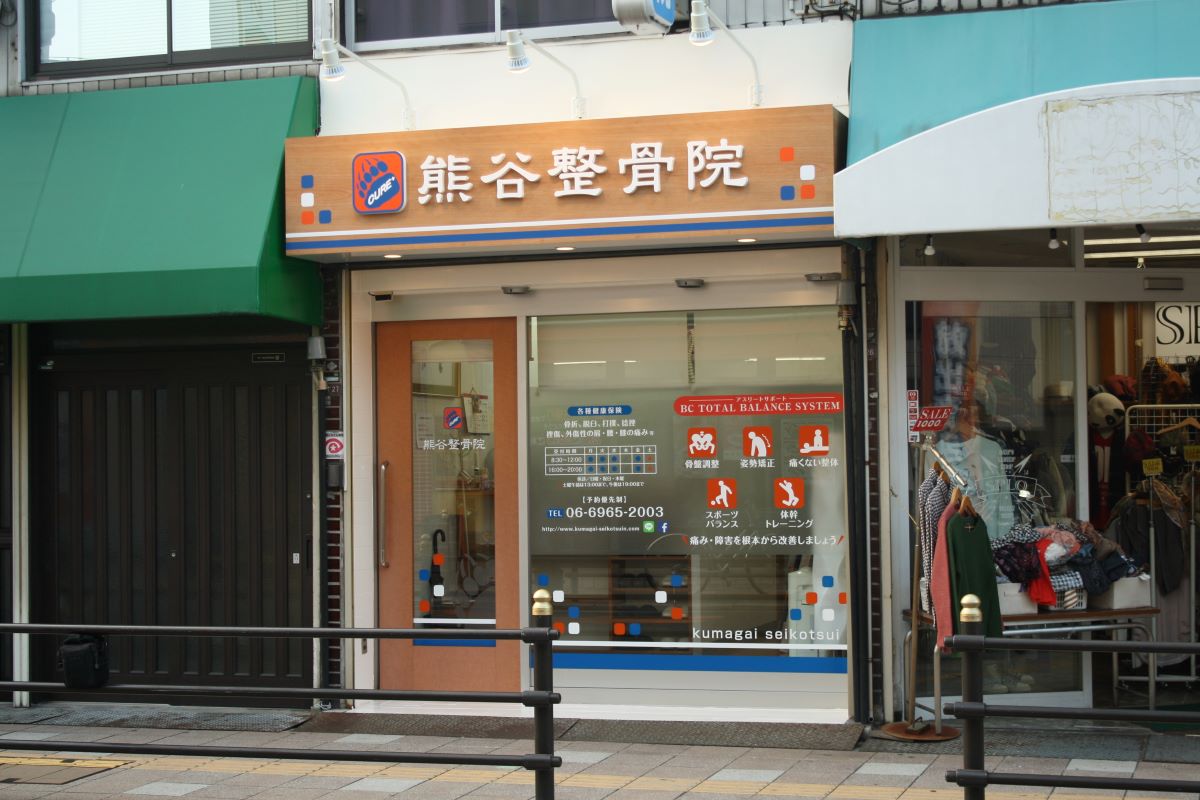 木目調のダイノックシートと立体文字でしっかりと顔となるサインをつくり、懸垂幕…