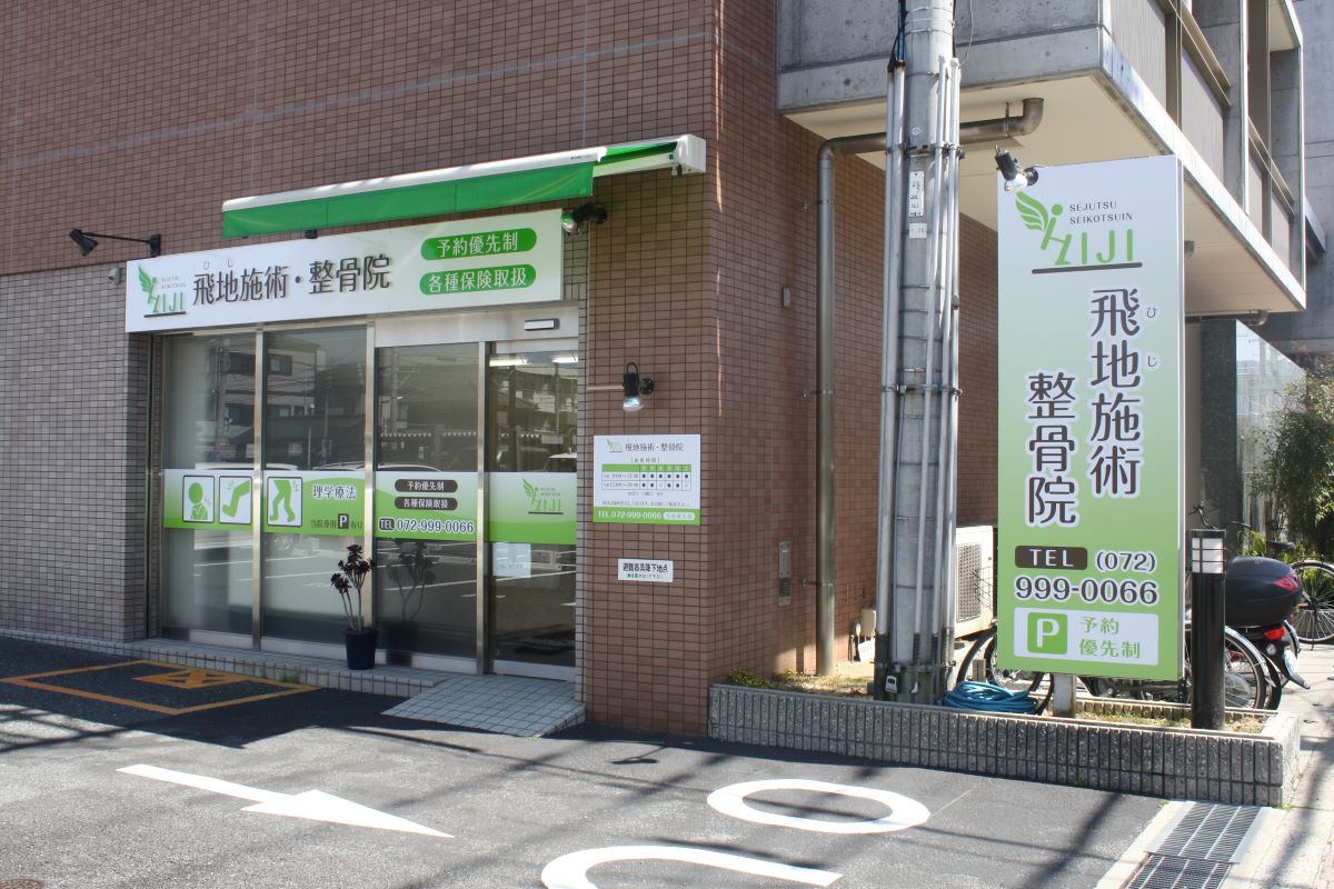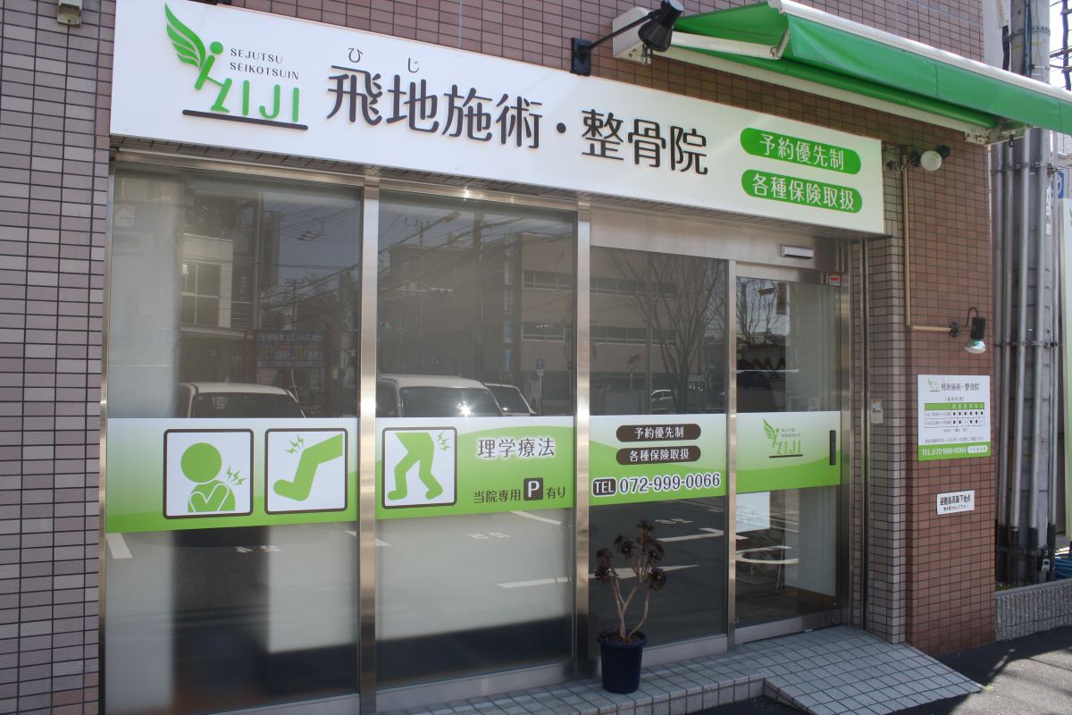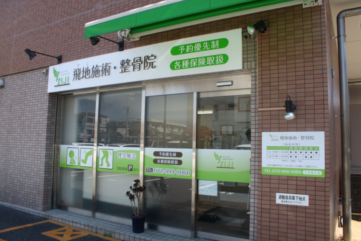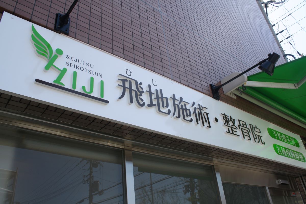 整骨院のキーカラーで建物全体をスペーシングして、明るく分かりやすい外観に仕上…