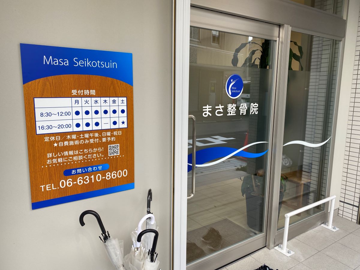 大きなピクトグラムを配置して整骨院と一目でわかりやすく親しみやすい印象を受け…