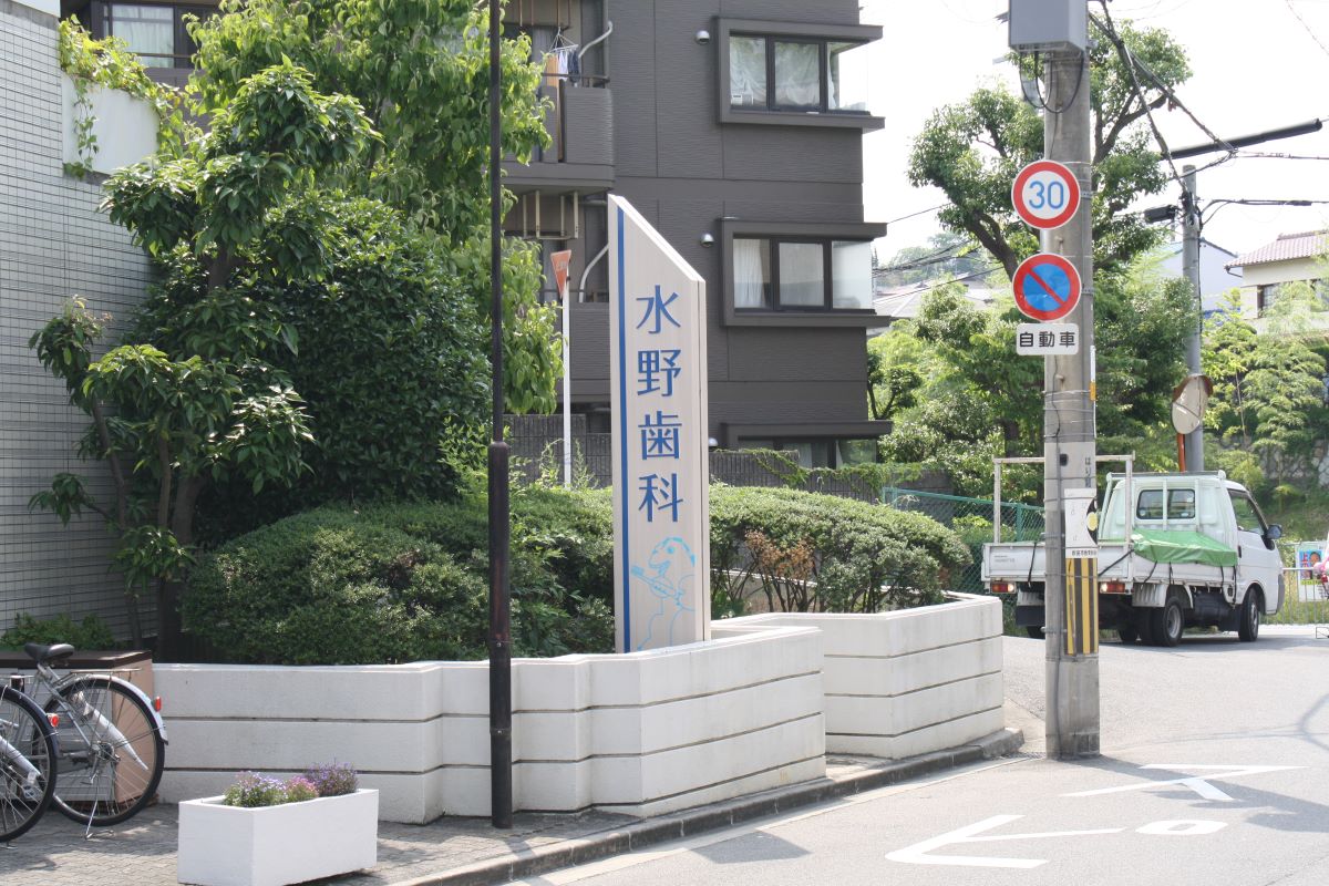 大きな壁面を活かして歯型の時計を設置し、思わず目を引く明るい外観にリニューア…
