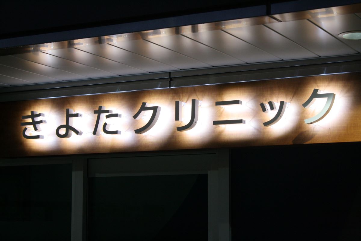 光る立体文字で夜でも分かりやすく、スタイリッシュな外観にリニューアルしました…