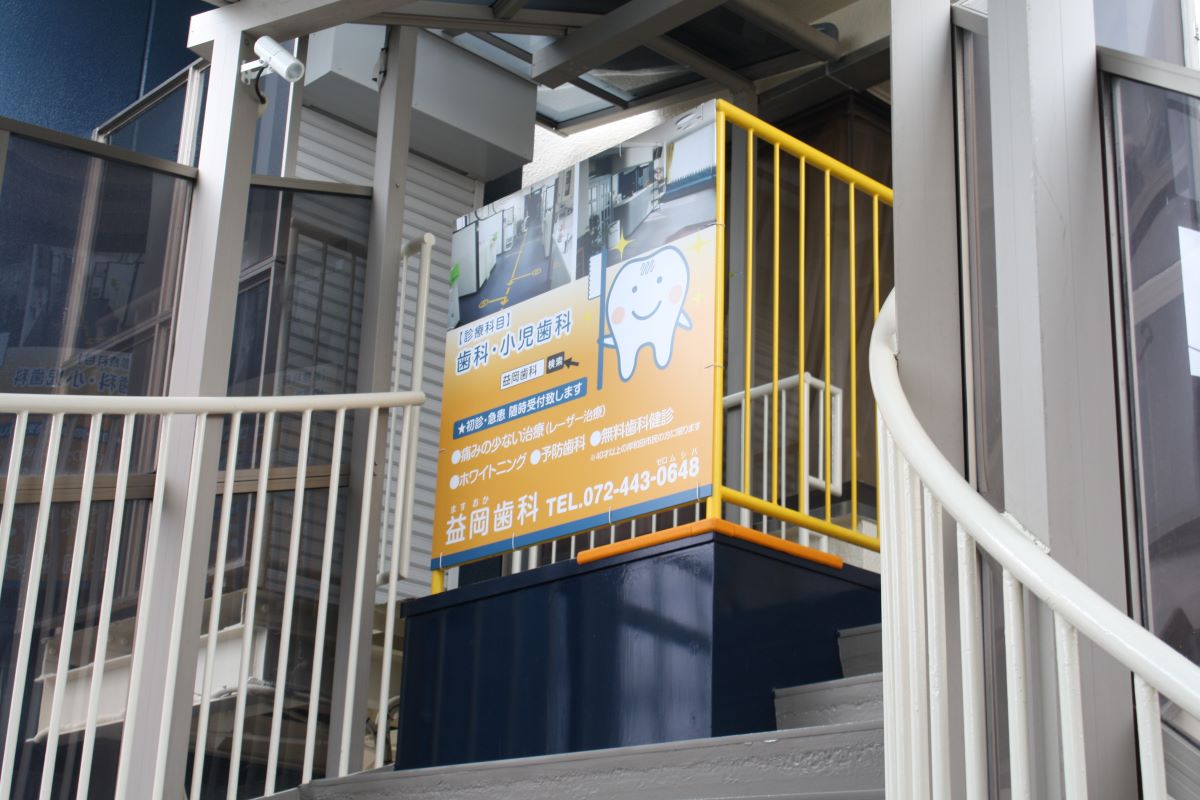 階段のスペースを活かして、インパクトのある看板を設置することで、親しみやすく分かりやすい外観にリニューアルしました。