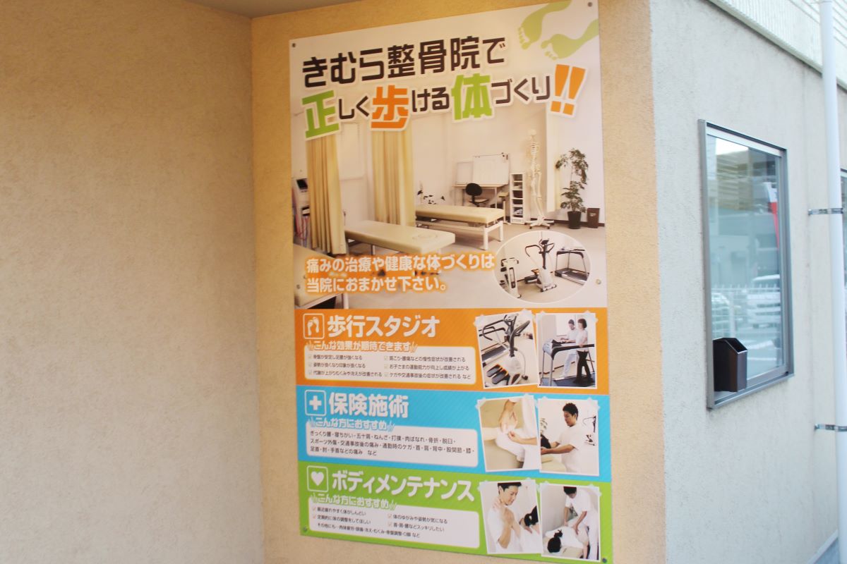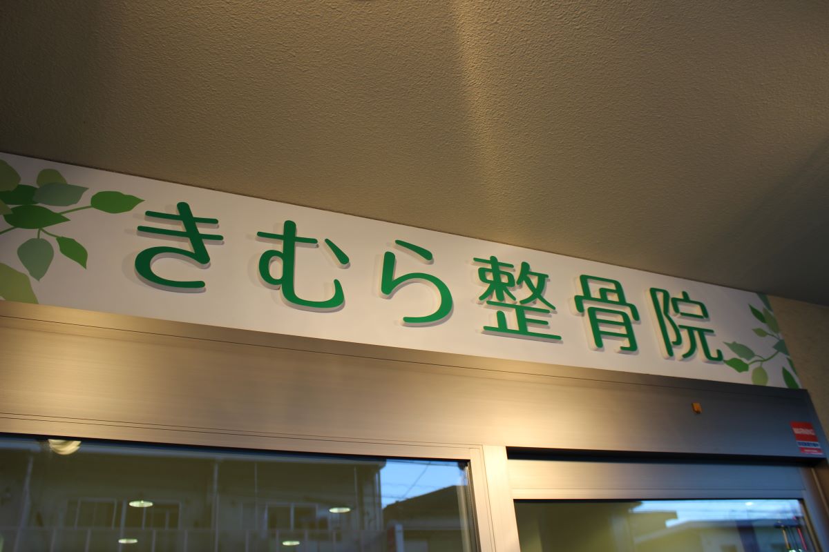 木目調のダイノックシートと立体文字でしっかりと顔となるサインをつくり、懸垂幕…