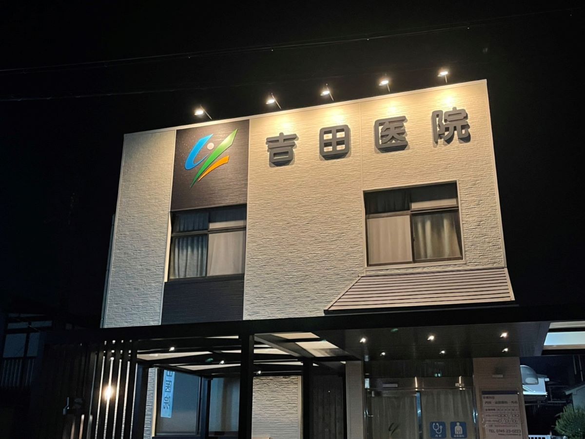 光る立体文字で夜でも分かりやすく、スタイリッシュな外観にリニューアルしました…