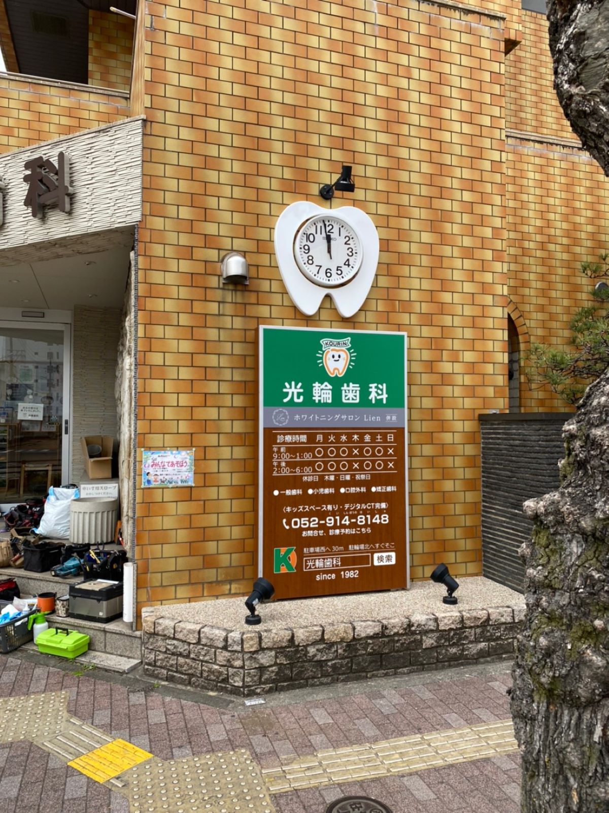 角地である立地や大きな壁面を活かして、時計や壁面サインをつけて思わず目に留まる外観にリニューアルしました。