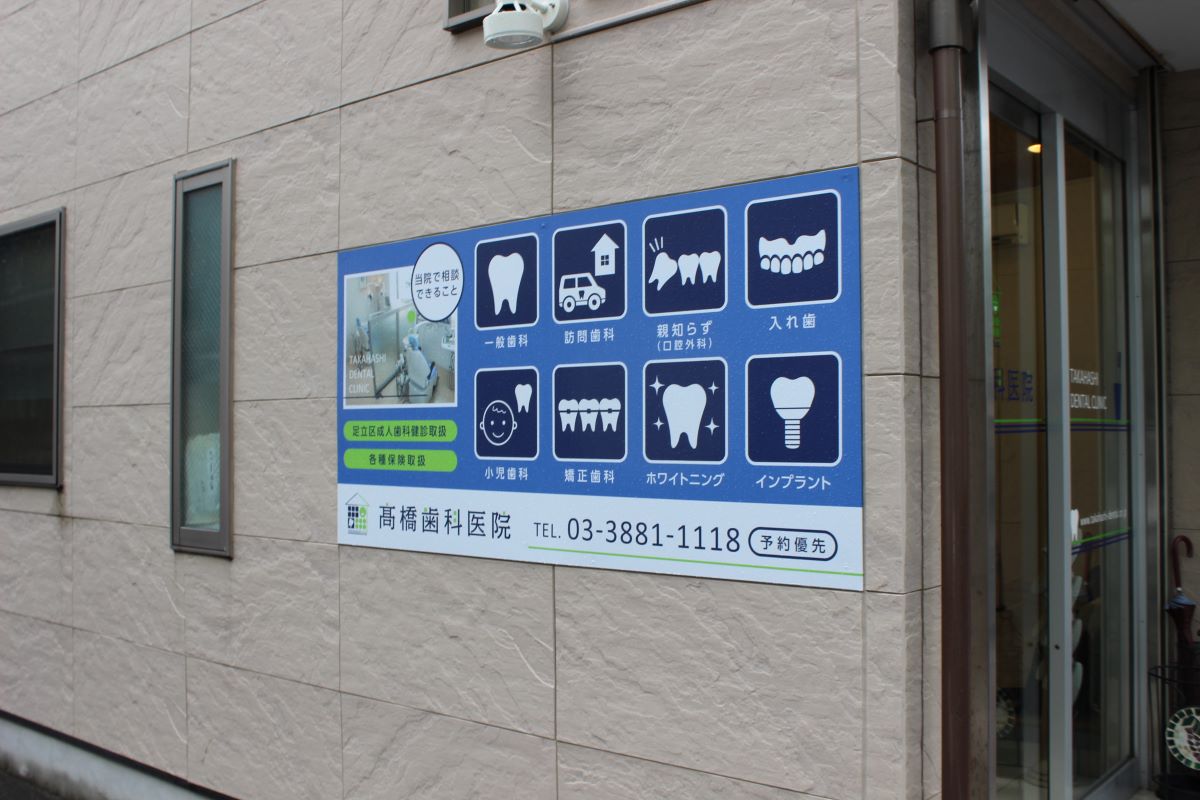 顔となるサインや2Fへの誘導サインをつけ分かりやすく、ダイノックシートを使用…