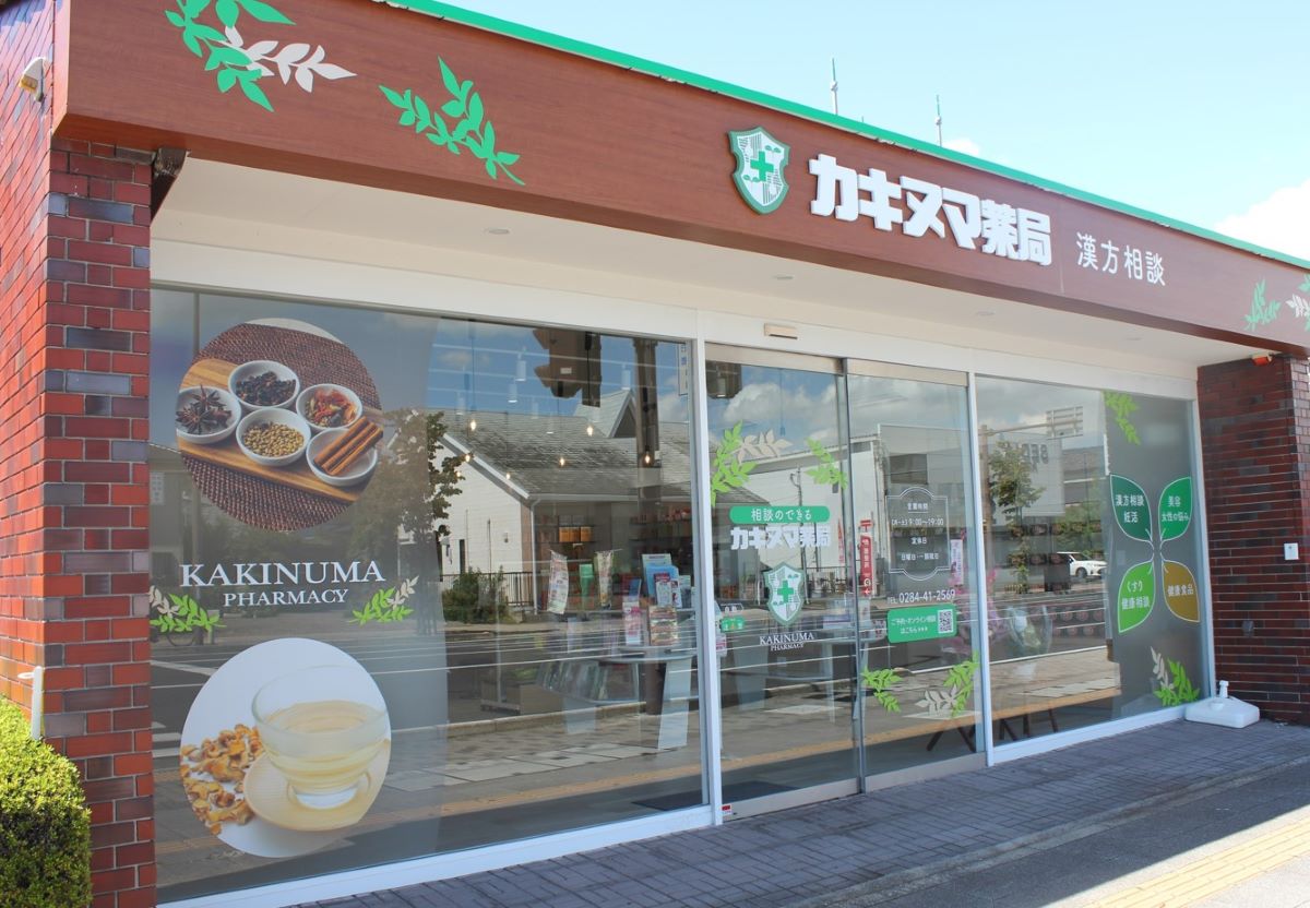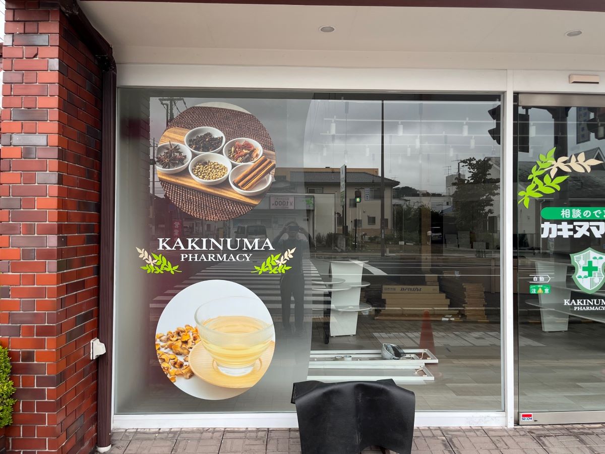 ガラス面や自立サインで漢方の雰囲気を取り入れた、ナチュラルで分かりやすい外観に仕上げました。