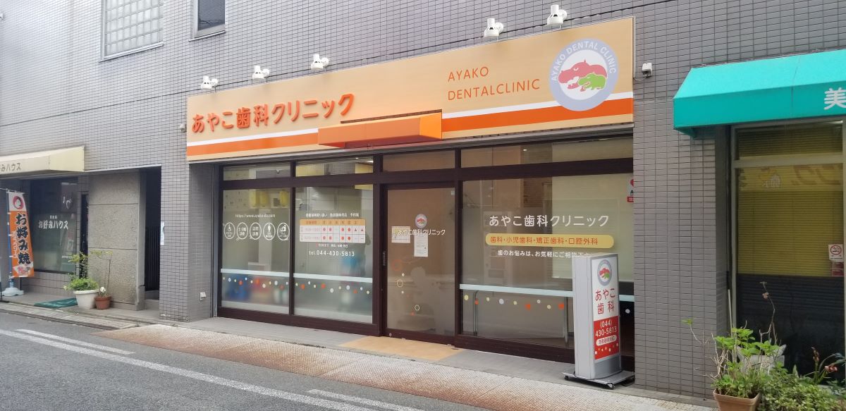 広い間口を活かし、歯型の時計やガラスシートでインパクトのある分かりやすい外観…