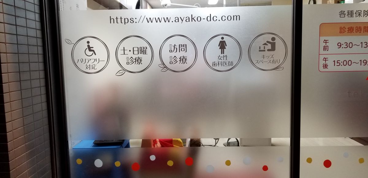 ガラス面に帯状のシートを貼ったり、柱全面を使い情報を出すことで、2階店舗でも…