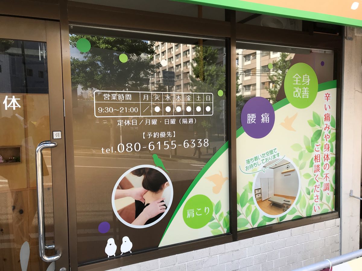 住宅街に立地する整骨院なので景観を損ねないように、アースカラーの配色でシンプ…