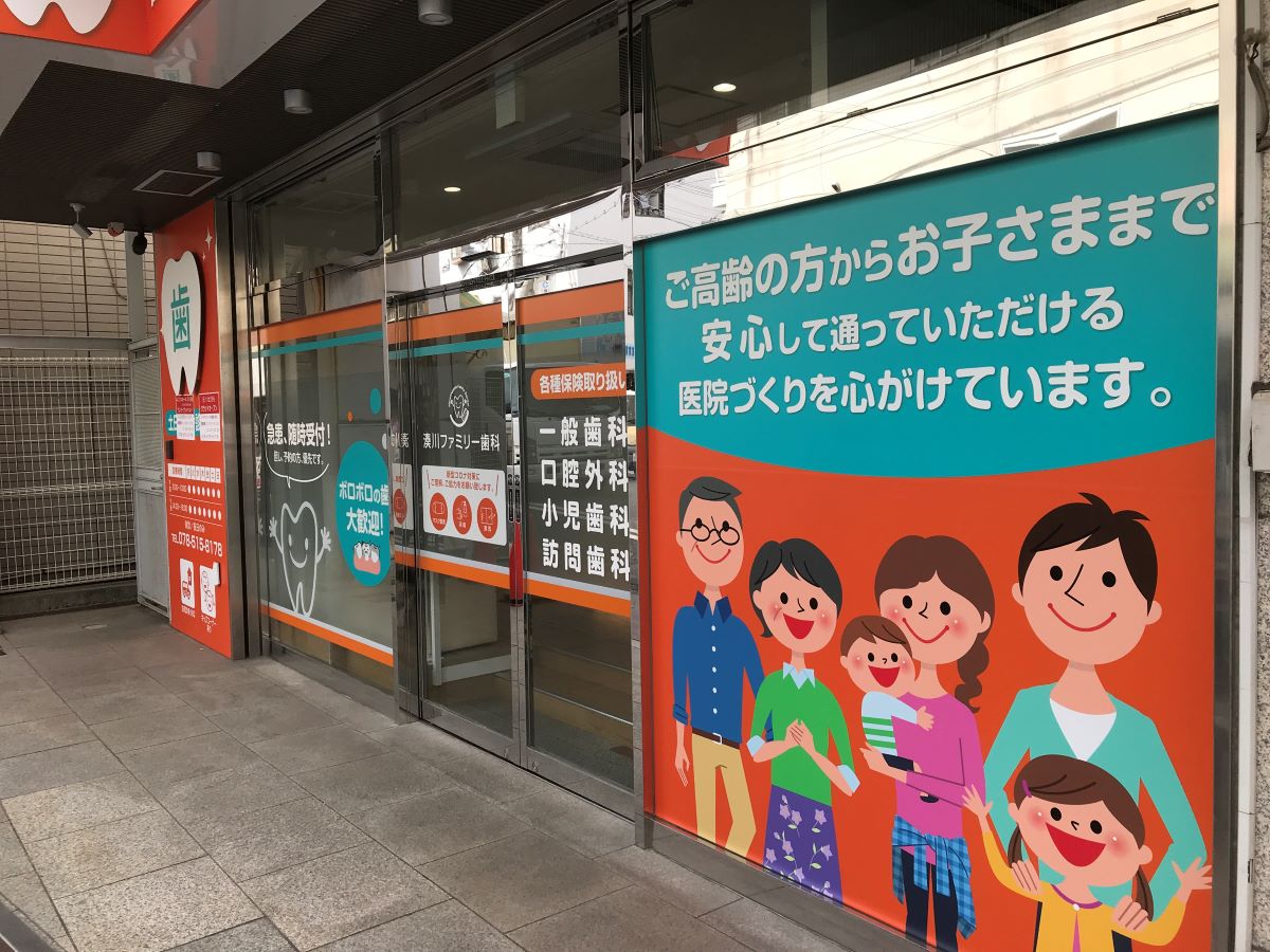 歯型の立体造形や壁面サインで、ポップでインパクトのある分かりやすい外観に仕上げました。。