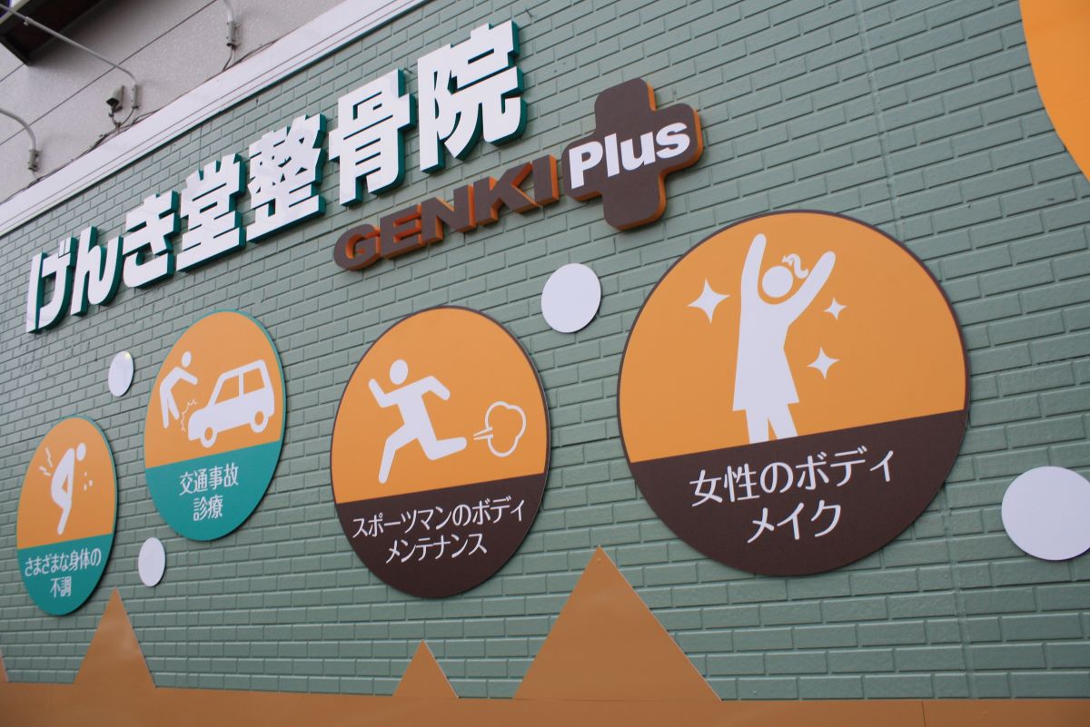 整骨院のキーカラーで建物全体をスペーシングして、明るく分かりやすい外観に仕上げました。