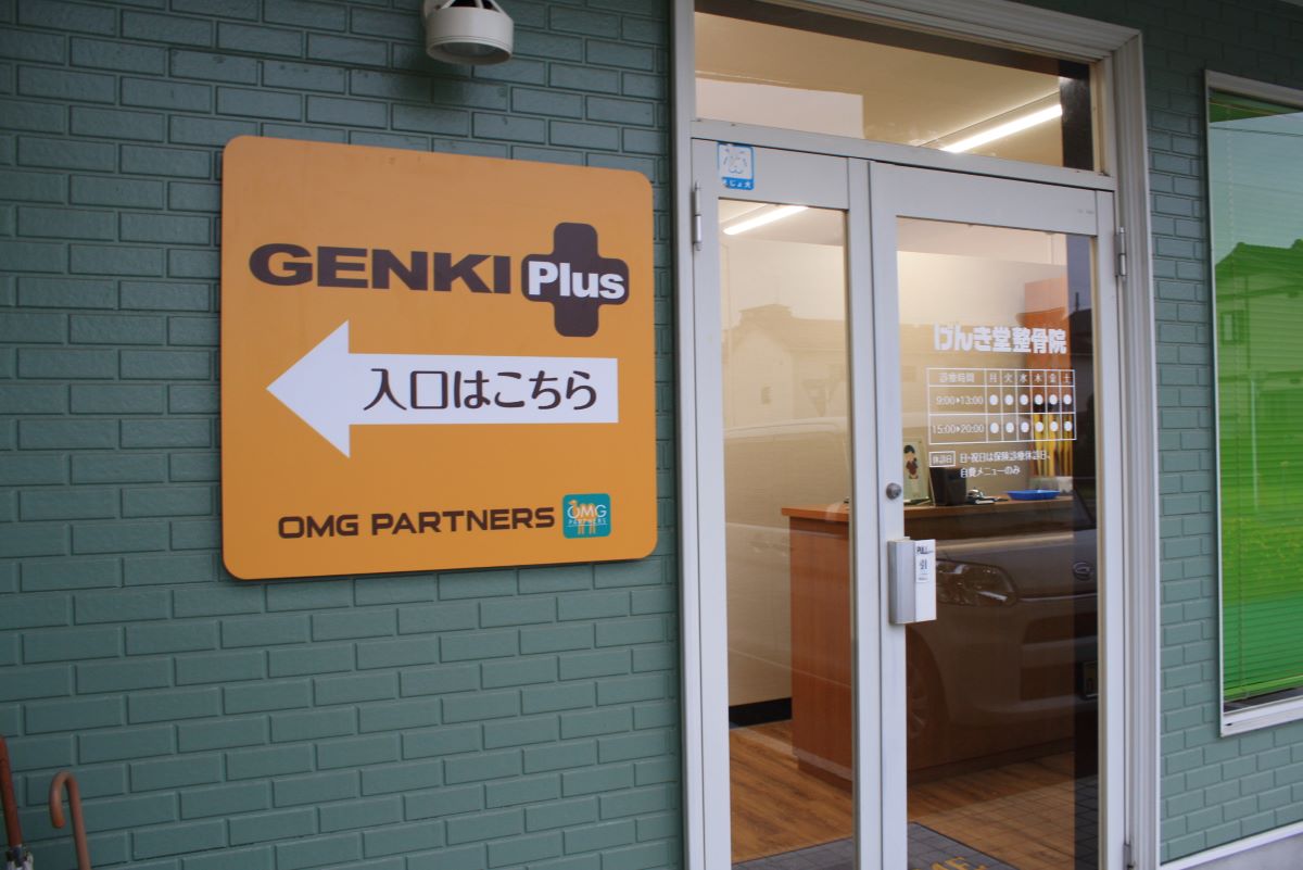 顔となる上部サインと情報発信のための壁面サインを設置して、業種が分かりやすい…