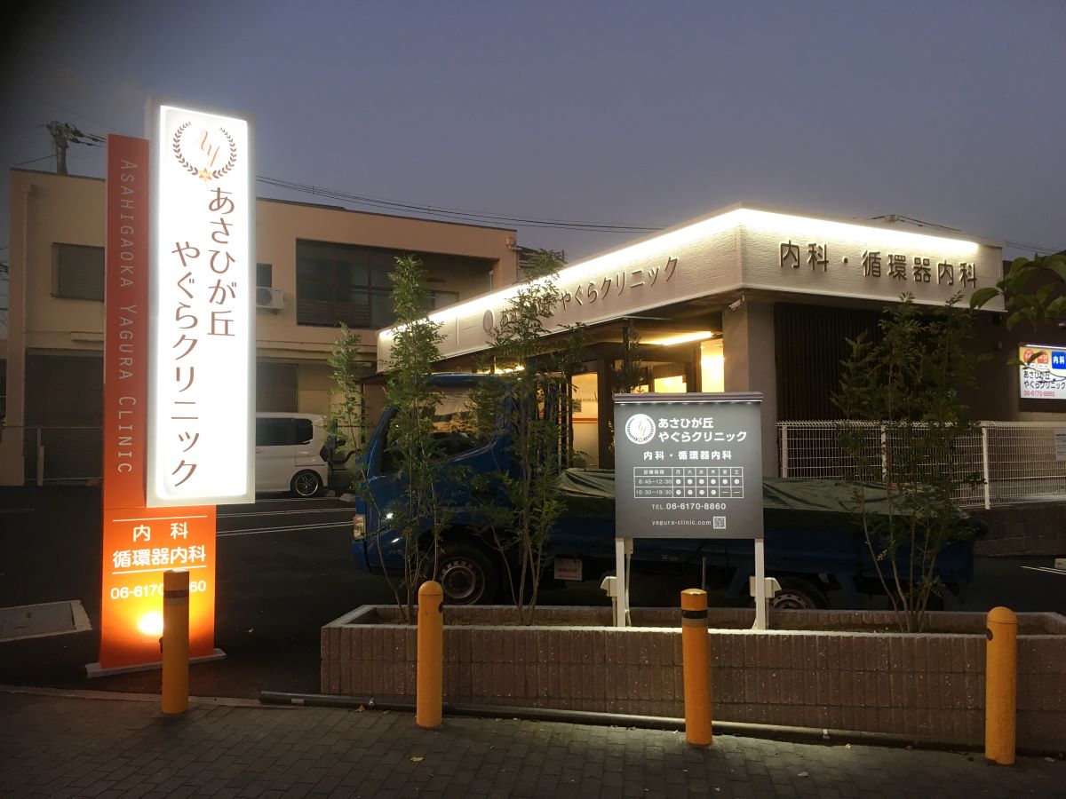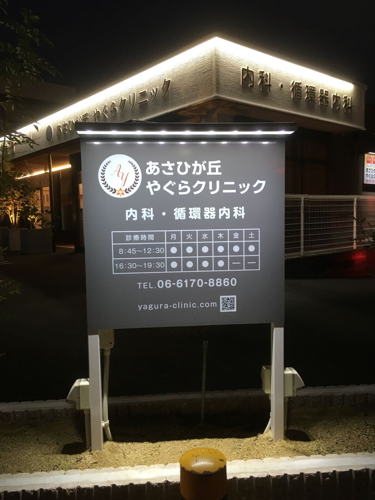 光る立体文字で夜でも分かりやすく、スタイリッシュな外観にリニューアルしました…