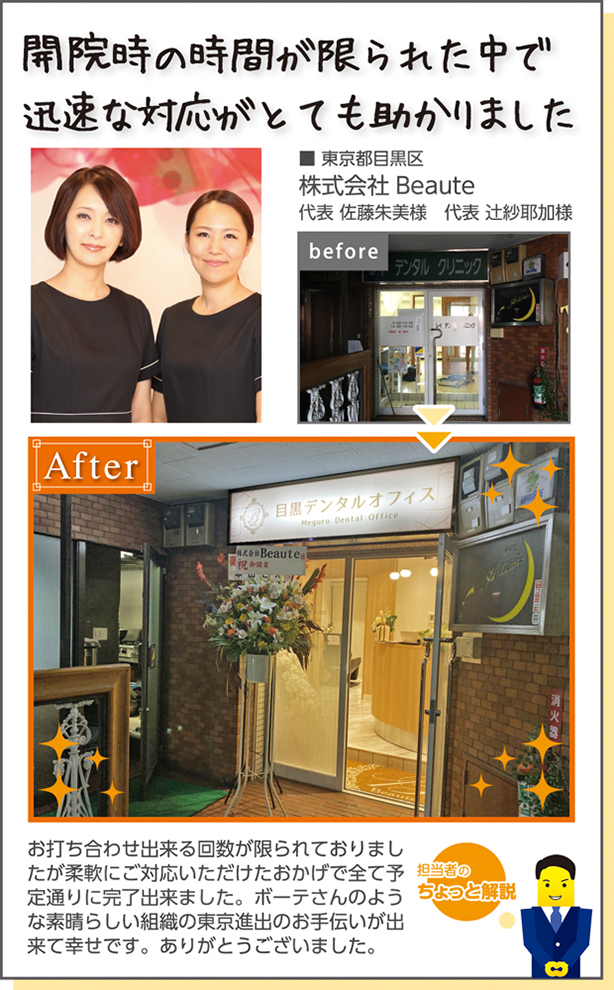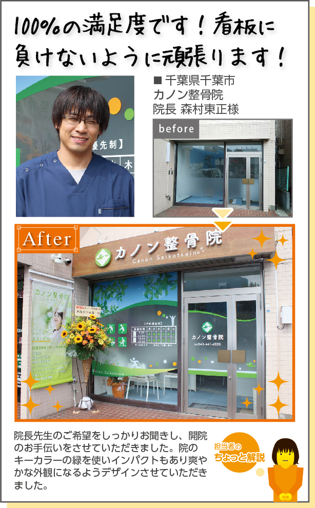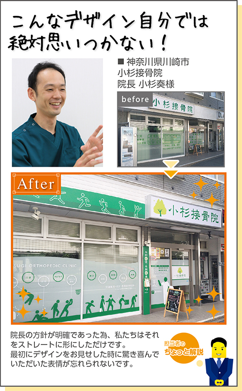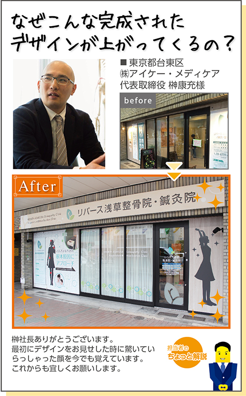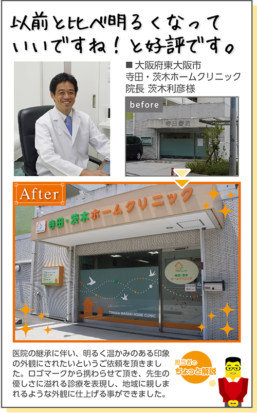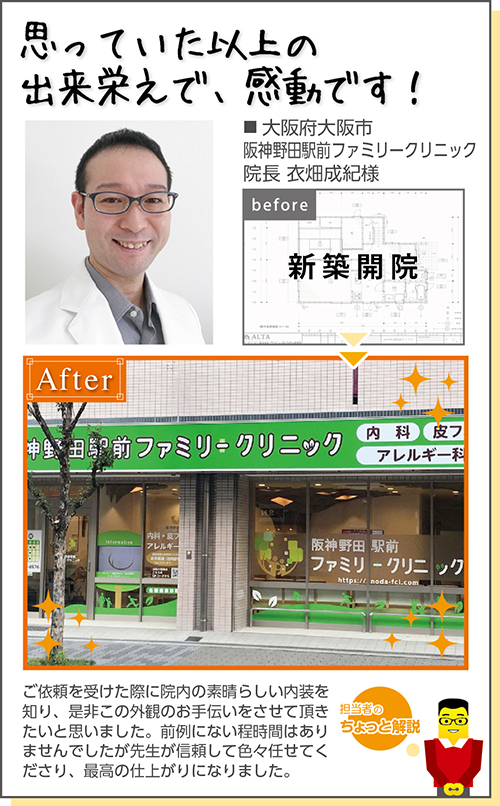 クリニックのガラス面リニューアル事例をご紹介します。Before After 全面がガラスのテナントは看板デ …