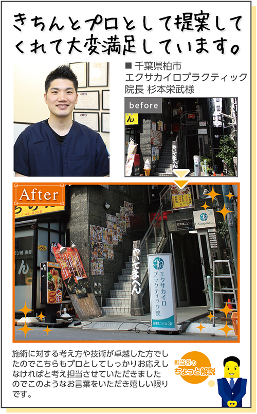 私たちは担当させていただいたお客様が看板によってどのような効果を得ることが出来たのか?をしっかり確認しています。その看板効果測定結果を蓄積し、既に効果が立証済みの成果に繋がる看板手法をご活用いただけます。