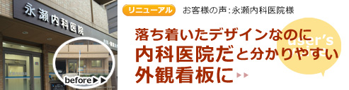 店舗を開業する時には周辺の人口や人通りなどを徹底的に考えますよね。それは多くの人に自店を見てもらえる事で、多くの新規顧客が増えやすいと思うからではないでしょうか。それなのに見て貰った時に魅力的だと思ってもらう為に外観や看板に力を入れよう!と思う方が実際あまりいないのが現実です。立地条件がいいなら毎日出会うターゲットに上手くPR出来るよう看板に力を入れましょう。店舗や医院の前を通行している人々はターゲットです。でも無意識に歩いている人達ですから残念ながらほとんどのお店や医院は存在すら認識されていないのが現実です。そこで無意識の通行人でも認知できるよう外観・看板をデザイン設計します。外観・看板は店舗や医院の第一印象ですから、外観・看板で良いイメージを与える事が出来ればサービス内容までもが良いイメージに映り来店・来院に繋がります。北堀江看板は外観・看板にデザインを施し外観・看板だけをリニューアルした結果、集客・集患に繋がった事例データが豊富にあります。是非この外観・看板リニューアルのノウハウをご活用下さい。